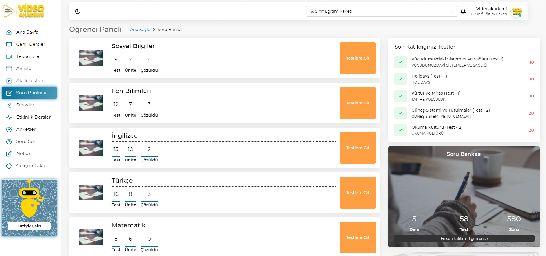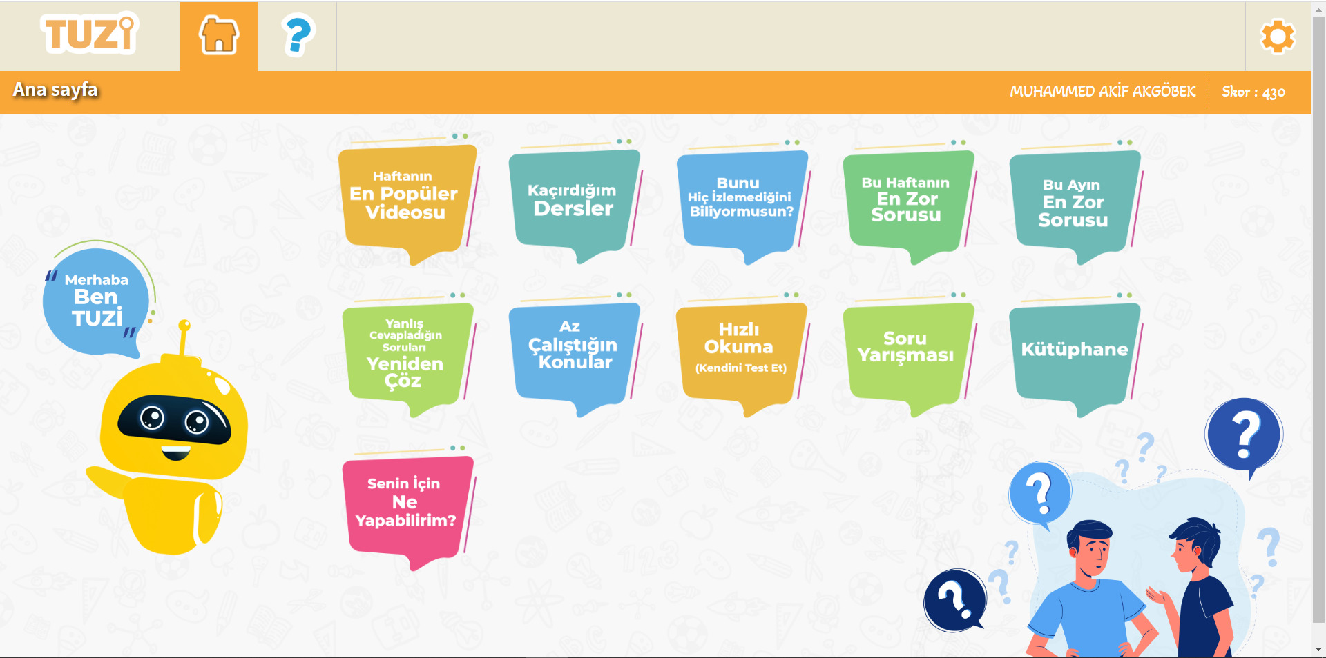 Yapay zeka tabanlı altyapısı sayesinde, kullanıcının kazanımlarını tanımlar ve bilgi düzeyleri ilerledikçe öğrencinin eksik olduğu konulara göre çalışmalar üretir.